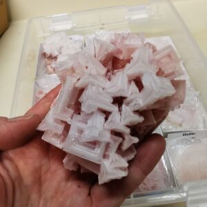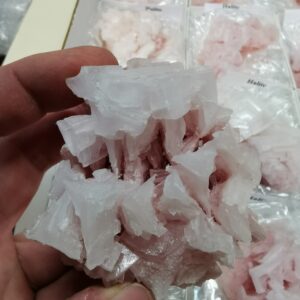 Pink Halite from Searles Lake California. The chemical formula for Halite is NaCl. It is a natural form of salt. Searles Lake is an endorheic dry lake in the Searles Valley of the Mojave Desert, in northwestern San Bernardino County, California. An endorheic lake is a drainage basin which does not drain into other external…