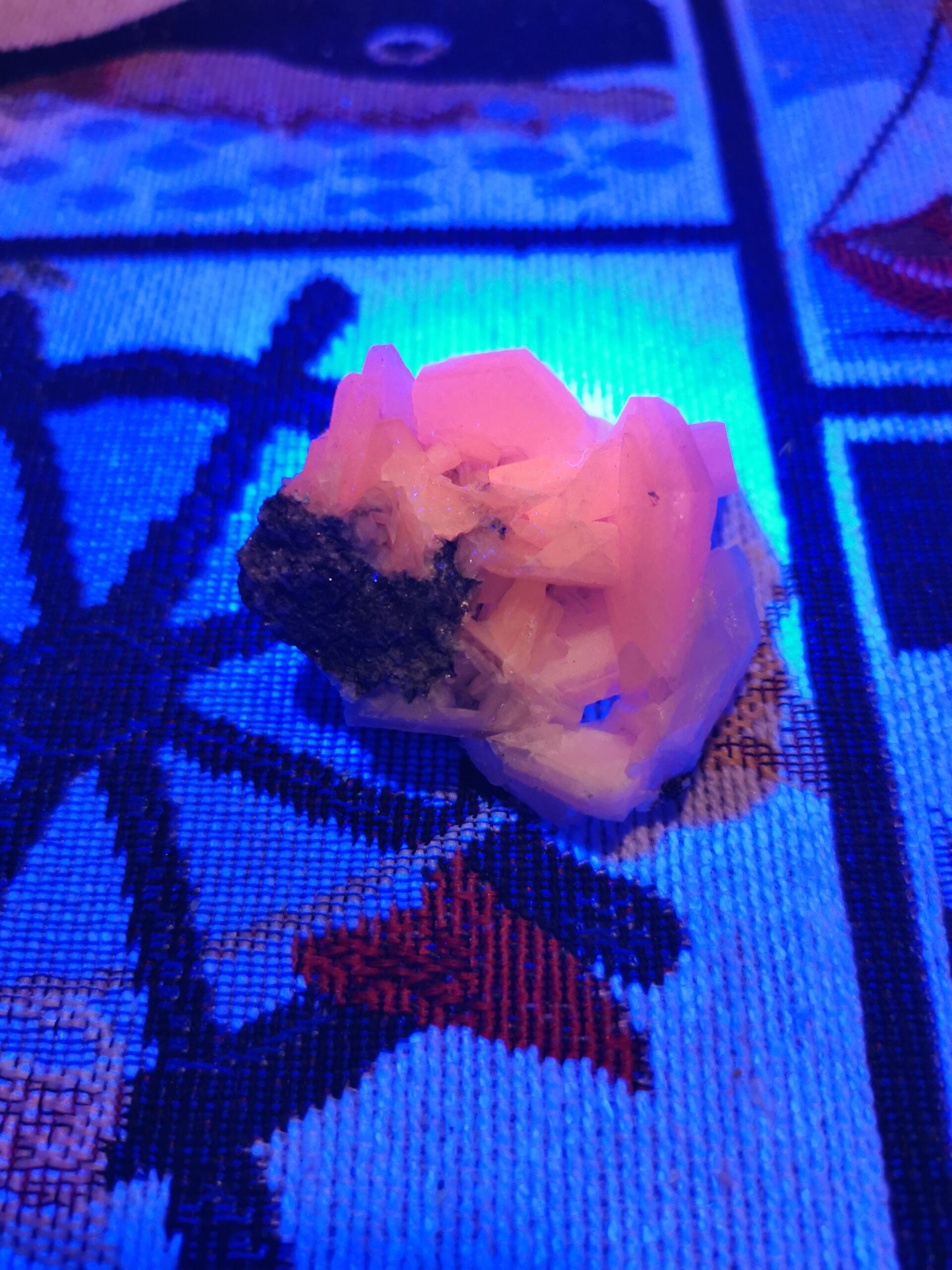 Highly UV reactive. These are one of the brightest minerals under UV that I have personally seen. Shows brilliant orange under long wave UV lighting. It was very difficult to capture the true color under UV with my camera but I tried to get a representative photo and they are very beautiful.