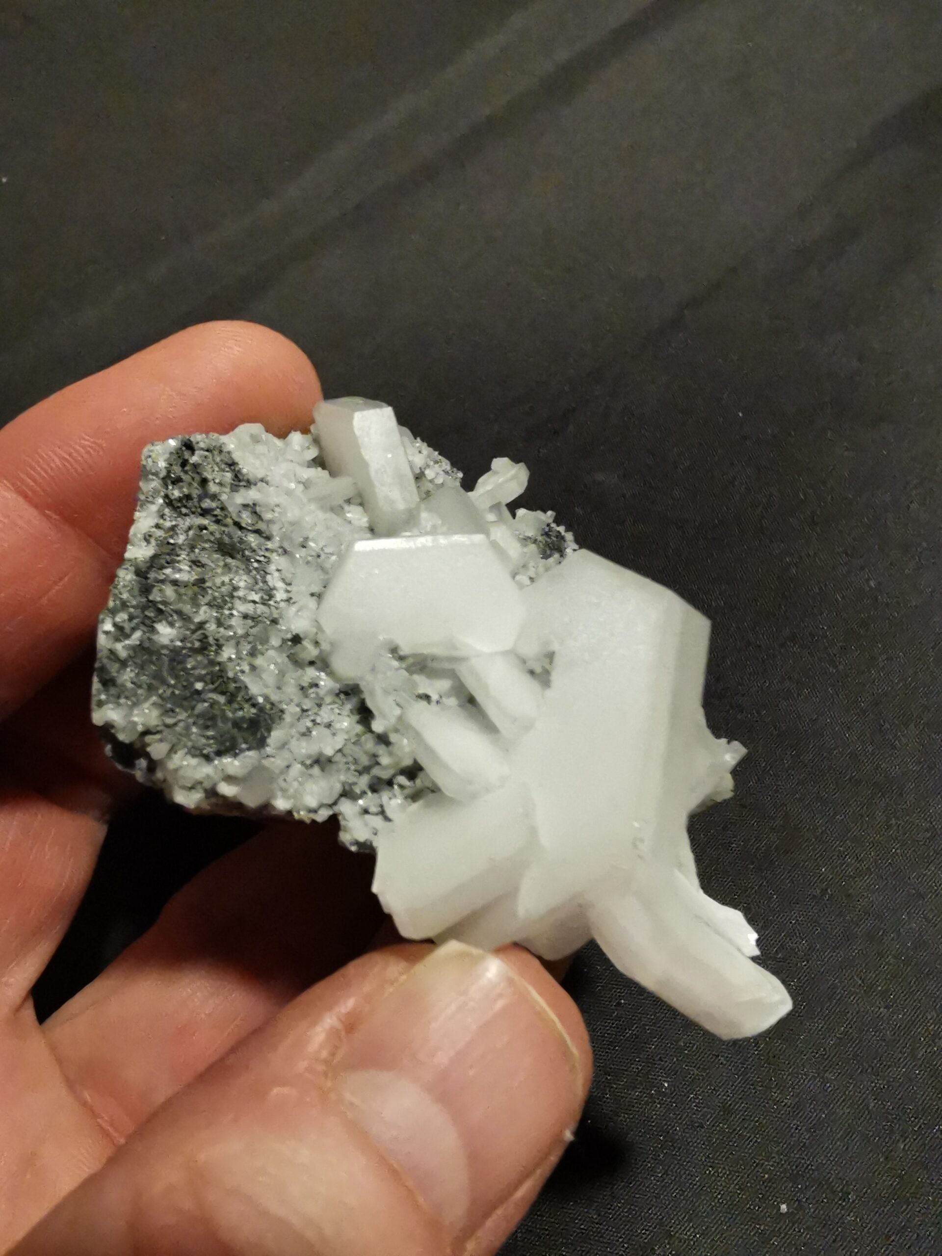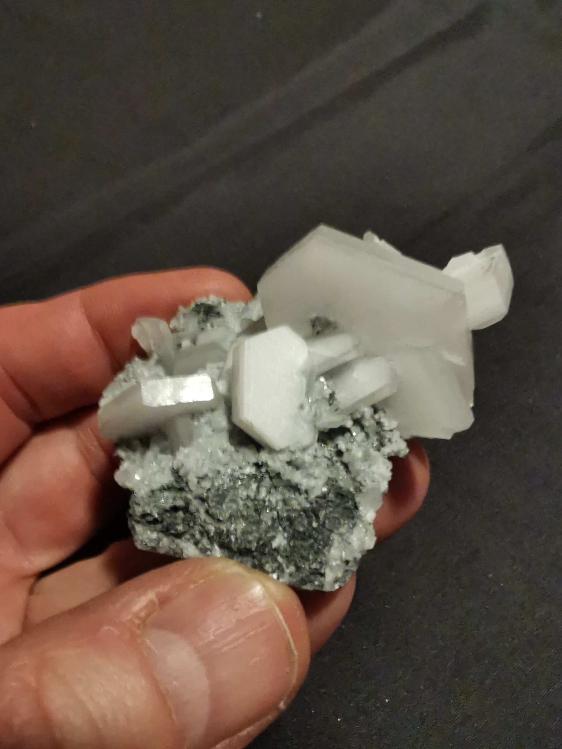 Very aesthetically appealing hexagonal calcite crystals on matrix.
